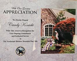 Carolyn devoted her life to dogs. She was instrumental in organizing the start of the North Coast BMD Club of Ohio in 1988.